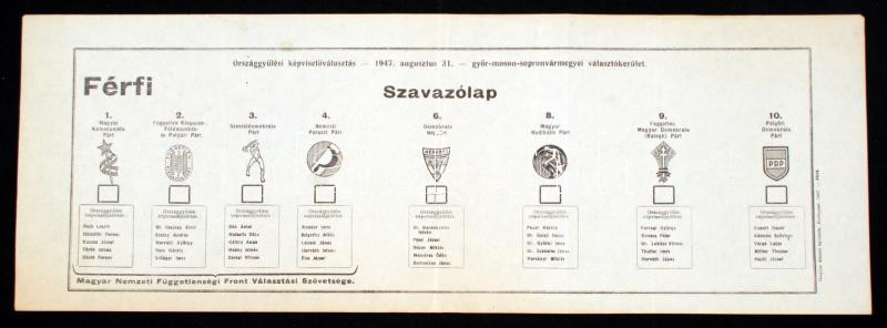1947 Az országgyűlési képviselőválasztás női szavazólapja a Győr-Moson... https://www.darabanth.com/en/228-Online-auction/228.0/Other-collectibles/Printed-Materials~5/1947-Az-orszaggyulesi-kepviselovalasztas-noi-szavazolapja-a-Gyor-Moson-Sopron-varmegyei-v~II1011123