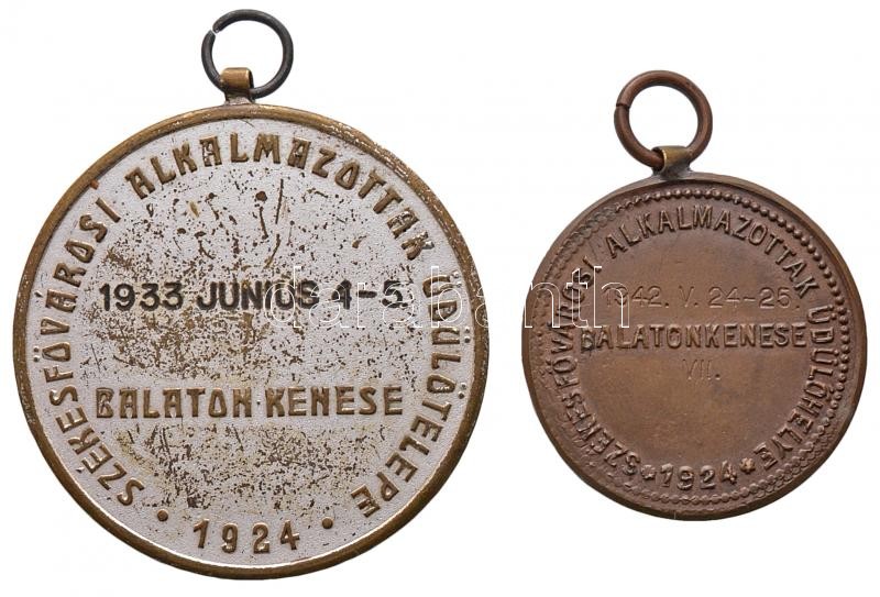 1933-1942. "Székesfővárosi alkalmazottak üdülőhelye 1924 - Balatonkenese 1924" Br és ezüstözött Br emlékérem füllel (30mm, 41mm) T:2,2-