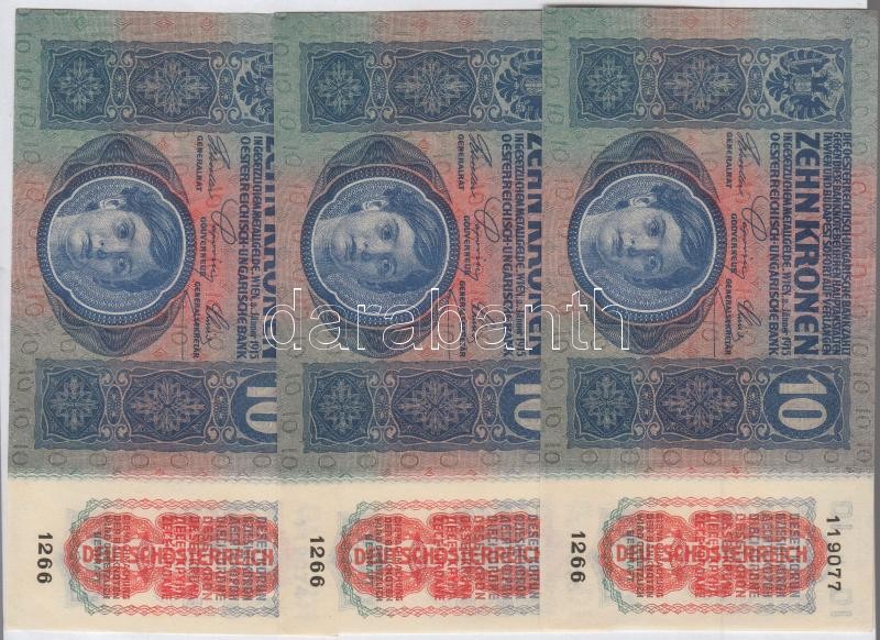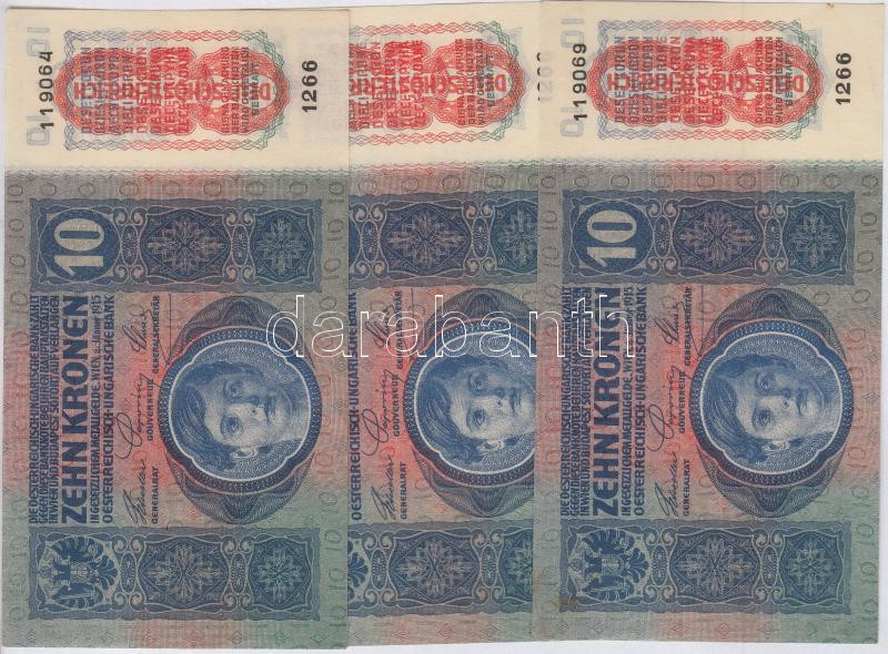 1915. 10K (6x) közeli sorszámúak, több sorszámkövetővel, mind "Deutschösterreich" felülbélyegzéssel T:I,I-