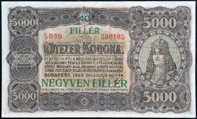 https://www.darabanth.com/en/229-Online-auction/229.0/Numismatics/Hungarian-Banknotes~54/1923-5000K-TW-jelolessel-nyomdahely-jeloles-nelkul-40-FILLER-NEGYVEN-FILLER-felulbel~II1022583