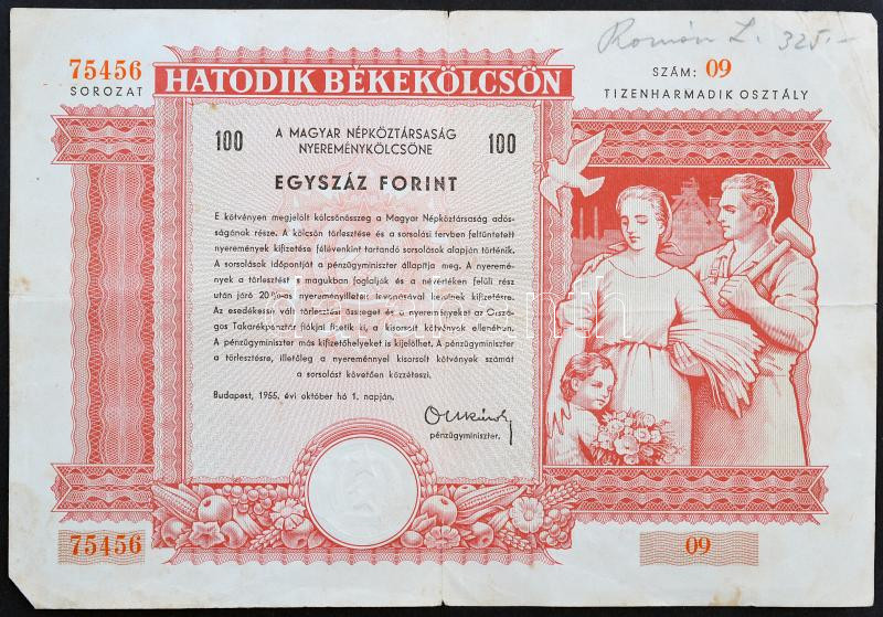 https://www.darabanth.com/en/229-Online-auction/229.0/Numismatics/Shares-and-Tickets~52/Budapest-1955-Hatodik-Bekekolcson-nyeremenykolcson-100Ft-rol-TIII~II1024239