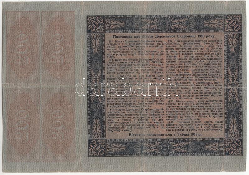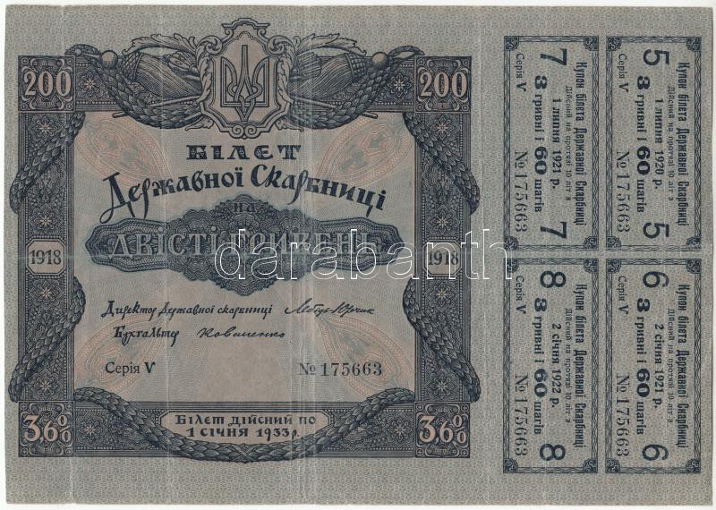 Ukrajna / Autonóm Köztársaság 1918. 200H kötvény tanúsítvány szelvényekkel T:III