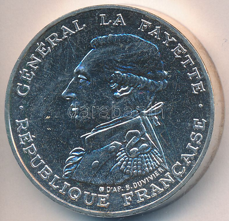 Franciaország 1987. 100Fr Ag "Lafayette születésének 230. évfordulója"... https://www.darabanth.com/en/229-Online-auction/229.0/Numismatics/Worldwide-coins~59/Franciaorszag-1987-100Fr-Ag-Lafayette-szuletesenek-230-evforduloja-tanusitvannyal-T2-3C~II1021532
