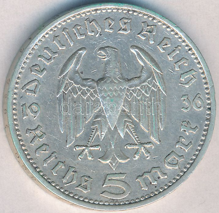 https://www.darabanth.com/en/229-Online-auction/229.0/Numismatics/Worldwide-coins~59/Nemet-3-Birodalom-1936F-5M-Ag-Hindenburg-T2-2--3Cbr3EGerman-Third-Reich-1936F-5-Marks-Ag-Hinden~II1023964