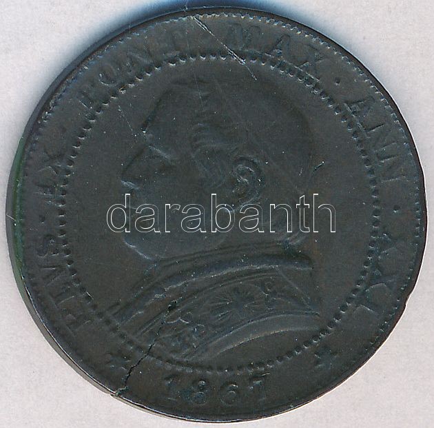Description: Olasz Államok/Pápai Állam 1867. 1S (5c) Cu "IX. Piusz" T:3 rep.