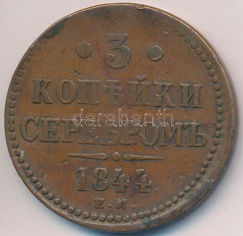 https://www.darabanth.com/en/229-Online-auction/229.0/Numismatics/Worldwide-coins~59/Orosz-Birodalom-1844EM-3k-Cu-I-Miklos-T2-3-3Cbr3ERussian-Empire-1844EM-3-Kopeks-Cu-Nicholas-I~II1027924