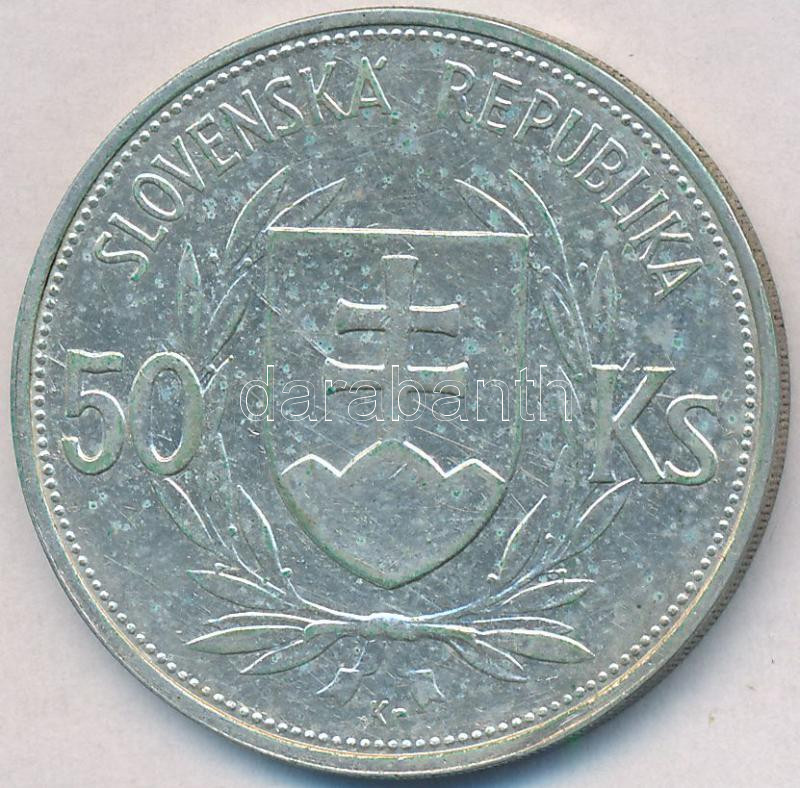 https://www.darabanth.com/en/229-Online-auction/229.0/Numismatics/Worldwide-coins~59/Szlovakia-1944-50K-Ag-Fuggetlenseg-5-evforduloja-T2-3-patina-3Cbr3ESlovakia-1944-50-Korun~II1024130