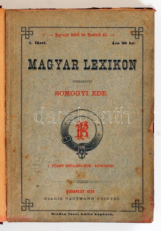 Description: Magyar lexikon. Az összes tudományok encziklopédiája 16 kötet, teljes sorozat. Szerk. Somogyi Ede. Bp. 1878-1885. Rautmann - Wilckens (Pallas). A fedőborítók többségében kopottas állapotban, az első lapok több kötetben kiszakadtak, egy lap hiányzik.