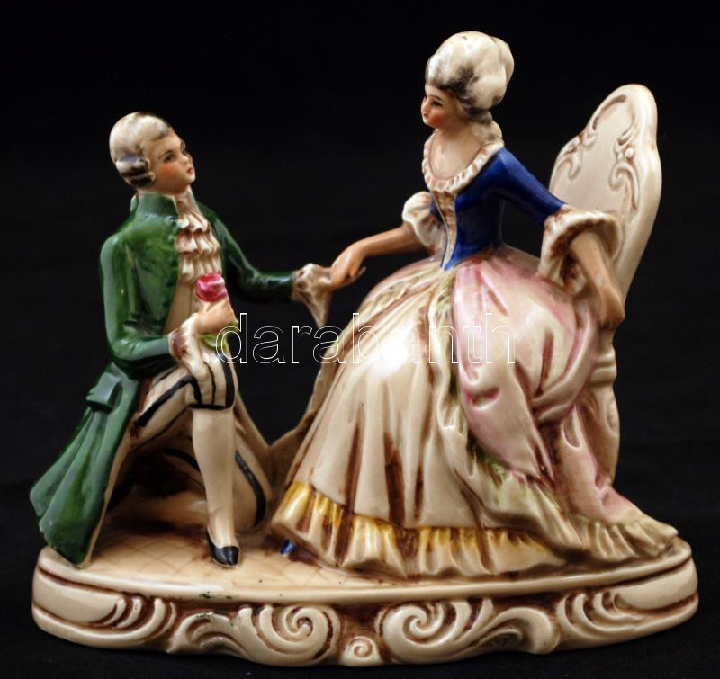Barokk jegyespár, német figurális porcelán, kézzel festett, jelzett, hibátlan, m: 13 cm