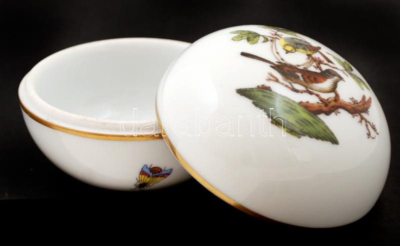 Herendi Rothschild ékszertartó, kézzel festett, hibátlan, jelzett, d:7,5 cm