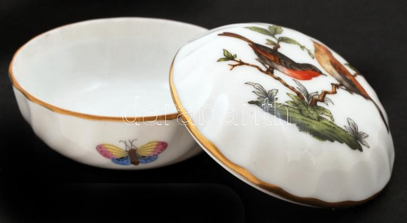 Herendi Rothschild ékszertartó, kézzel festett, hibátlan, jelzett, d:7 cm