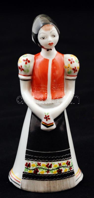 Hollóházi népviseletes porcelán lány, kézzel festett, jelzett, hibátla...