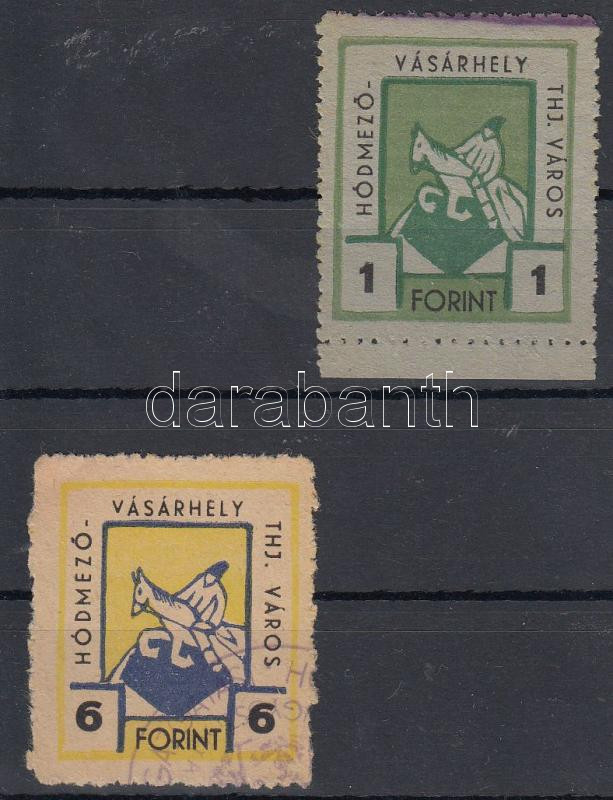 1947 Hódmezővásárhely városi illetékbélyeg 1Ft II. típus, 6Ft III. típ...