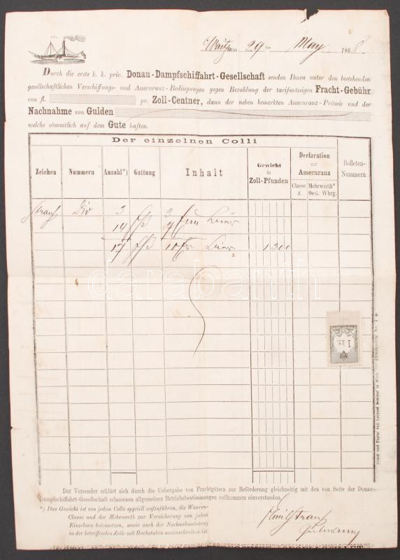 https://www.darabanth.com/en/229-Online-auction/229.0/Other-collectibles/Documents~400432/1868-a-Donau-Dampfschiffahrt-Gesellschaft-fuvarlevele-1-kr-okmanybelyeggel~II1028203