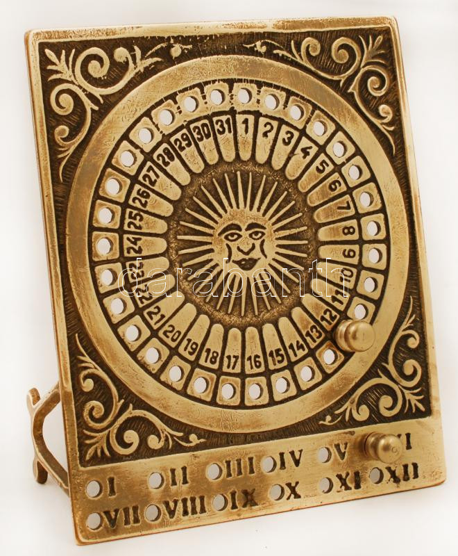 Régi, réz, asztali naptár, jelzés nélkül, 14x12cm
