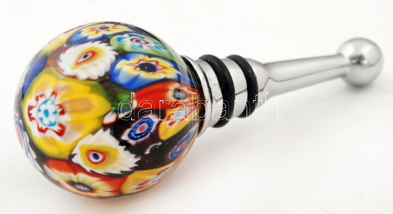 Millefiori színes virágokkal díszített üvegdugó fém véggel, hibátlan, ...