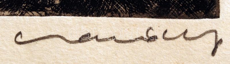 Csanády András (1929-): József III bányanyitás. Rézkarc, papír, jelzett, 19×29 cm