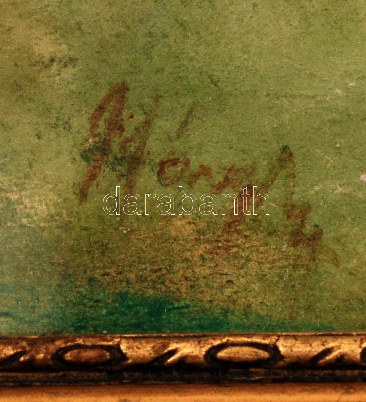 Háry jelzéssel: Nyári délután a parkban, akvarell, papír, üvegezett fa...