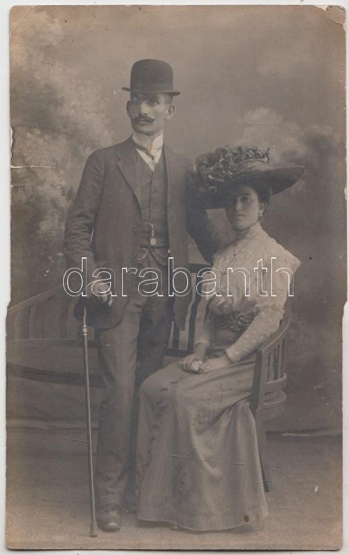 cca 1920 Házaspár, Ruzicska Gyula debreceni műtermében készült fotólap...