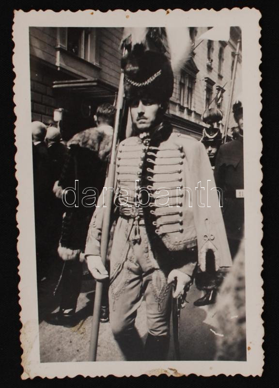 cca 1930-1940 Bp., Díszmagyarban a körmeneten, 6x9 cm