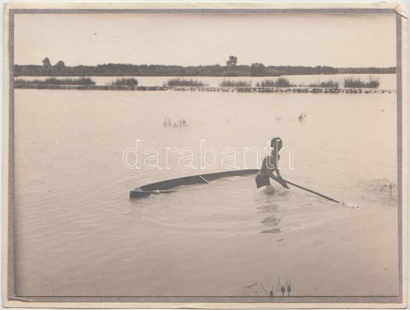 cca 1930 A léket kapott kenu szép emléke, 8x10 cm