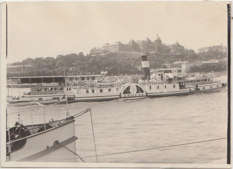 cca 1930 Zsófia sétahajó a Dunán, 2 db fénykép egy családi albumból, 6...