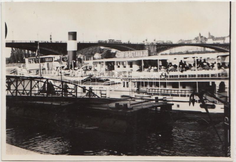 cca 1930 Zsófia sétahajó a Dunán, 2 db fénykép egy családi albumból, 6x9 cm