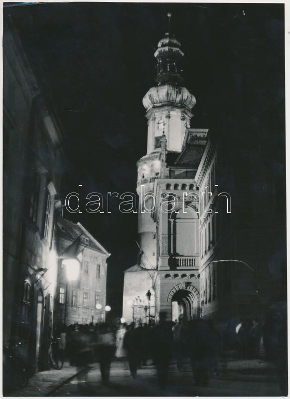 cca 1950-1960 Csík Ferenc (1894-1984): Soproni éjszaka, jelzetlen vintage fotóművészeti alkotás a szerző hagyatékából, 24x17 cm