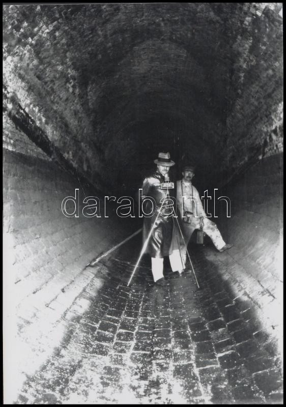 cca 1935 Budapest alatti csatornahálózat felmérése, ellenőrzése, korabeli negatívról készült mai másolat, 13x9 cm