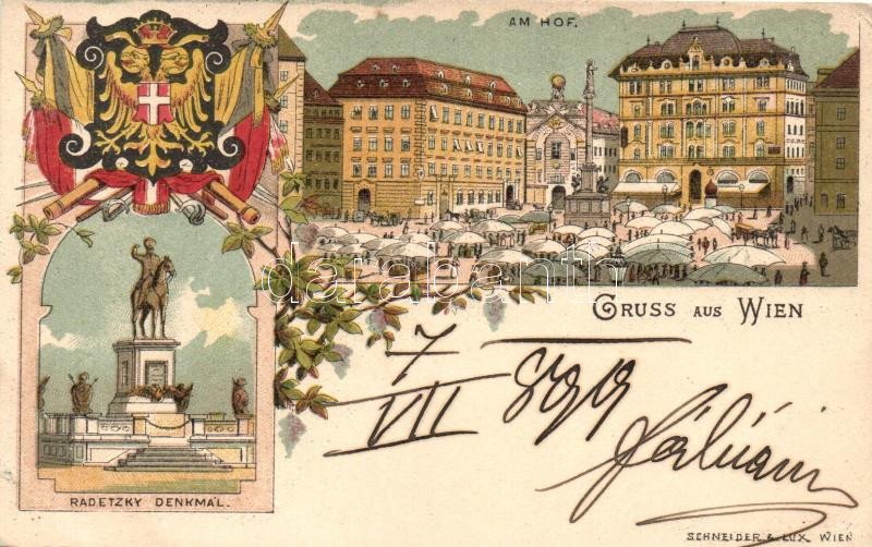 1899 Vienna, Wien; Radetzky Denkmal, Hof / statue, market, coat of arms, Schneider & Lux floral litho (EK)