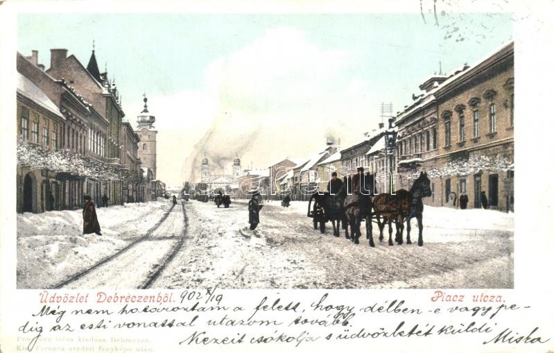 Debrecen, Piac utca, lovaskocsi, kiadja Pongrácz Géza, Kiss Ferencz er...
