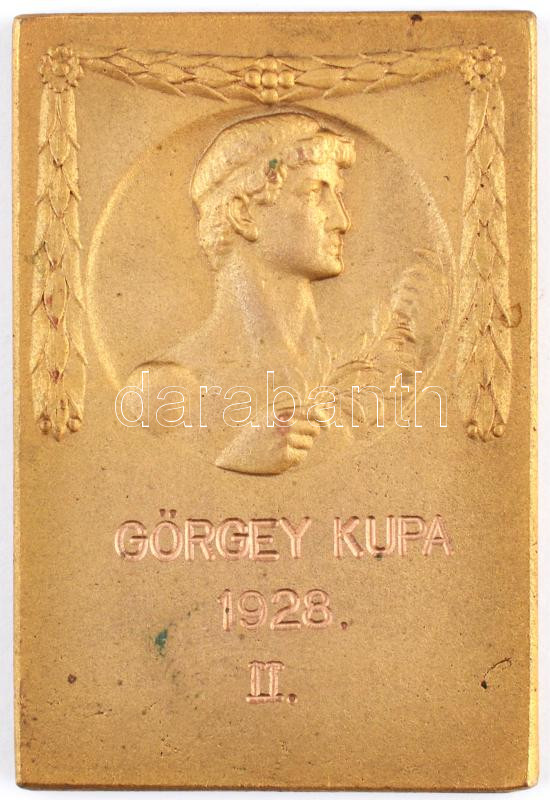 1928. "Görgey Kupa 1928. II. /N.T.E." aranyozott Br díjplakett (59x40mm) + ~1930. "Az érdem jeléül I. díj I.B.E.M.E." aranyozott Br díjplakett (37x56mm) T:2,2-