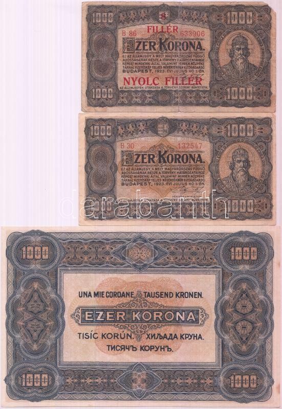 https://www.darabanth.com/en/230-Online-auction/230.0/Numismatics/Hungarian-Banknotes~400008/1920-1000K-Orell-Fussli-Zurich-plus-1923-1000K-2x-egyik-8-FILLER--NYOLC-FILLER-felulnyomC3~II1036870