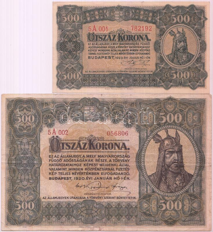 https://www.darabanth.com/en/230-Online-auction/230.0/Numismatics/Hungarian-Banknotes~400008/1920-500K-Orell-Fussli-Zurich-plus-1923-500K-Magyar-Penzjegynyomda-Rt-Budapest-TIII-3Cbr3EAda~II1036853
