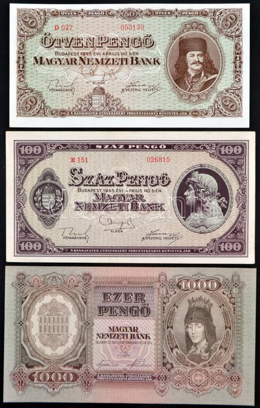 1943. 1000P + 1945. 50P + 100P T:I-,II hajtatlanok