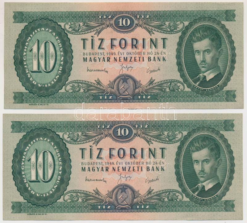 1949. 10Ft (2x) sorszámkövetők T:I,I-