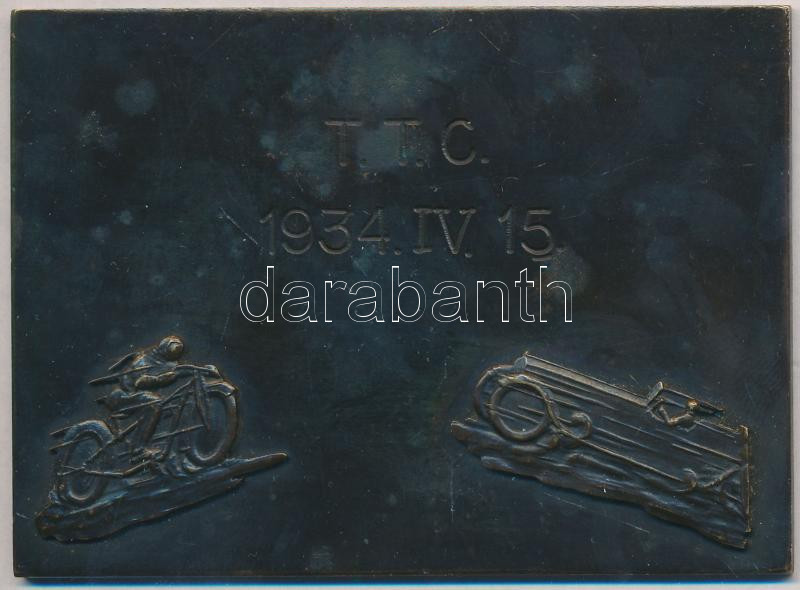 1934. "T.T.C. (Terézvárosi Torna Club)" autómobilos és motorkerékpáros fém plakett (58,5x81mm) T:2