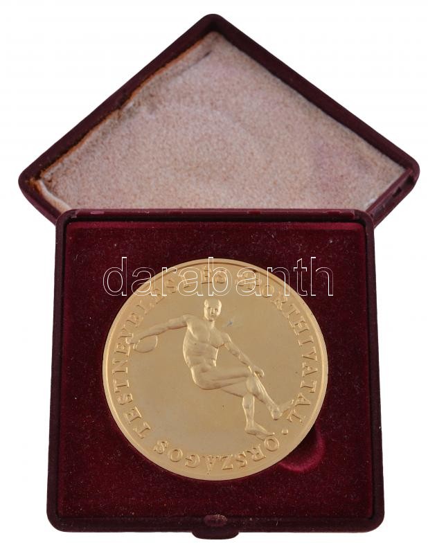 DN "Országos Testnevelési és Sporthivatal / Magyar Köztársaság" piefort aranyozott emlékérem, eredeti sérült díszdobozban (65mm) T:1- (exPP)