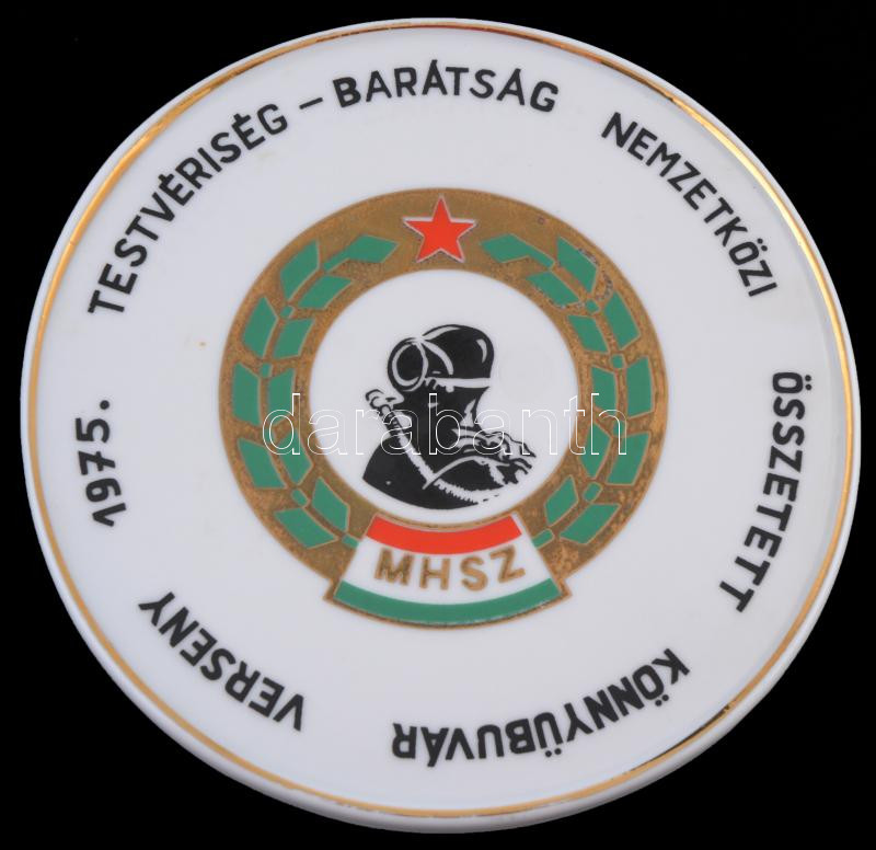 1975. "MHSZ-Testvériség-Barátság Nemzetközi Összetett Könnyűbúvár Verseny 1975." hollóházi porcelán plakett (134mm) T:2