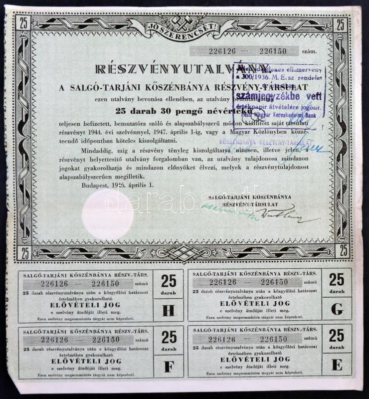 https://www.darabanth.com/en/230-Online-auction/230.0/Numismatics/Shares-and-Tickets~400006/Budapest-1946-Salgo-Tarjani-Koszenbanya-Reszveny-Tarsulat-reszvenyutalvanya-25db-30P-C3~II1035493