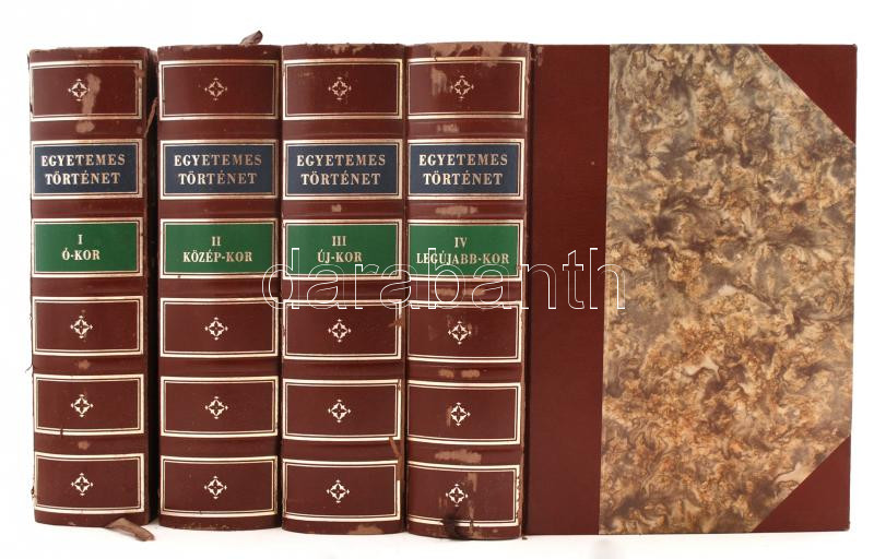 Description: Hóman Bálint, Szekfű Gyula, Kerényi Károly (szerk.): Egyetemes történet. I.-IV. kötet. 1. Az ókor története. Szerk. Kerényi Károly. 2. Váczy Péter: A középkor története. 3. Hajnal István: Az újkor története. 4. Iványi-Grünwald Béla: A legújabb kor története. Reprint kiadás!