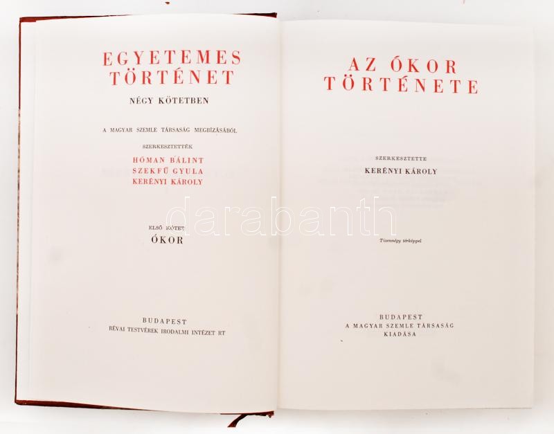 Hóman Bálint, Szekfű Gyula, Kerényi Károly (szerk.): Egyetemes történe... https://www.darabanth.com/en/230-Online-auction/230.0/Other-collectibles/Books-History~200011/Homan-Balint-Szekfu-Gyula-Kerenyi-Karoly-szerk-Egyetemes-tortenet-I-IV-kotet-1-Az~II1037325