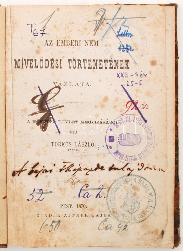 https://www.darabanth.com/en/230-Online-auction/230.0/Other-collectibles/Books-History~200011/Torkos-Laszlo-Az-emberi-nem-mivelodesi-tortenetenek-vazlata-Pest-1870-Aigner-Lajos-To~II1031427