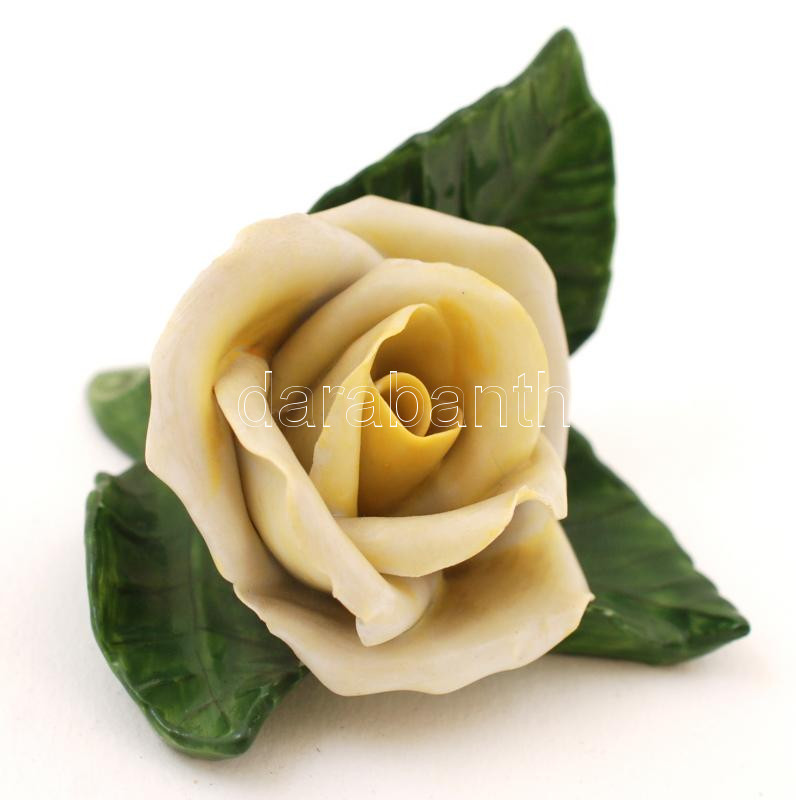 Herendi sárga porcelán rózsa, kézzel festett, apró lepattanásokkal, je...