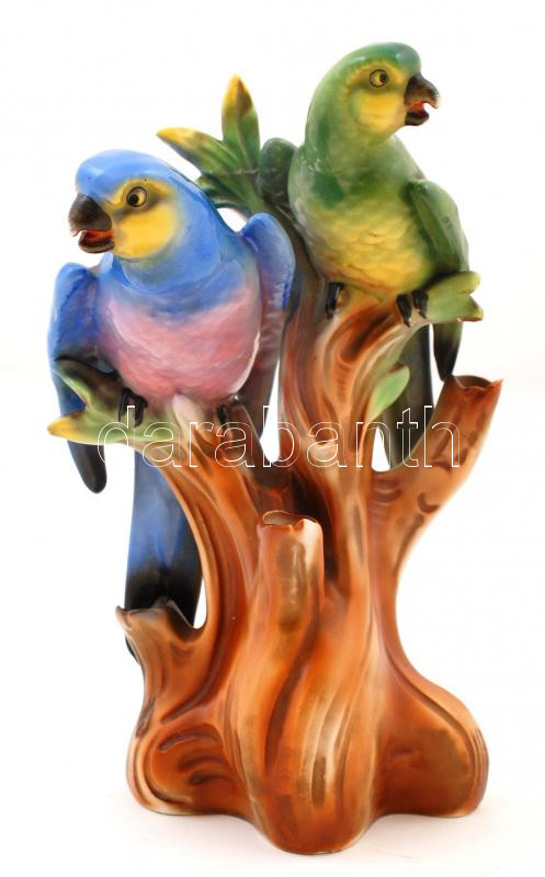 Papagájpár, porcelán, ragasztott, jelzett, m: 24 cm