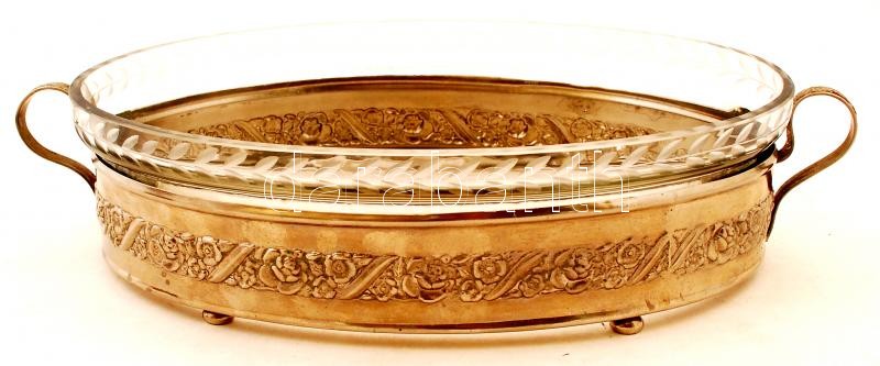 Üveg betétes, fém tartós, nagy kínáló 28x19cm, bombonier d:9cm