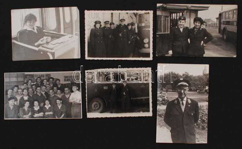 cca 1950-1965 A fővárosi autóbuszok ellenőrei, dolgozók, 6 db fotó, 11...