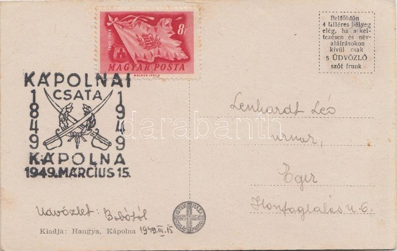 Kápolna, Római katolikus iskola, Honvédemlék, 'Kápolnai csata 1949' So. Stpl (ázott / wet damage)