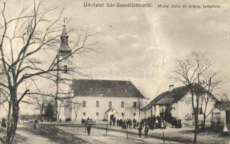 Sárszentlőrinc, Mizlai üzlet, Evangélikus templom (Rb)