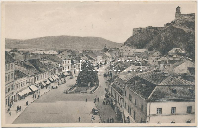 Trencsén, tér, Bata cipőbolt, vár / square, shoe shop, castle, automob...